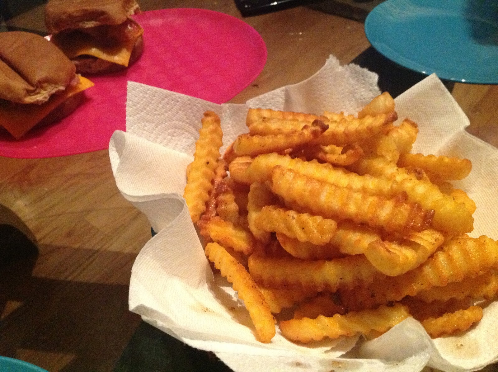 We grilled up some burgers and threw some fries in the oven using my simple trick to make them tasted fried even when they are actually out of the oven :)